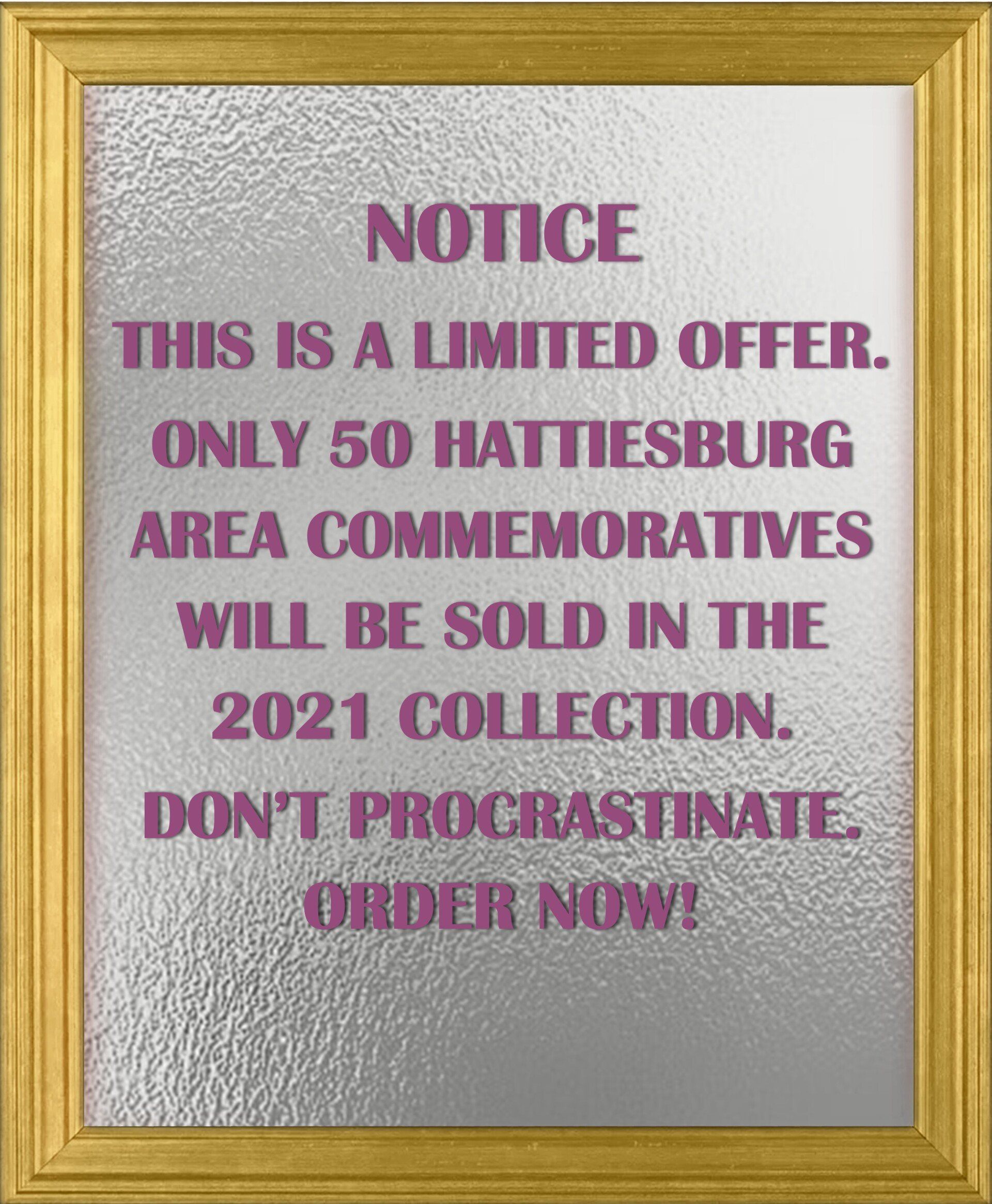 Each completed design is digitally transferred to our fine-arts printer and then hand-framed in a gold-colored frame (selected to complement the gold elements in the commemorative). The final product is a unique piece of art that will last a lifetime. Prices of our final 10 commemoratives for 2021 are $74.97 (a 15 percents discount from our regular price) for an 8 inch by 10 inch design including sales tax, if any. Local deliveries or Pick-up arrangements for the final product will be communicated to our buyers when the product is completed.